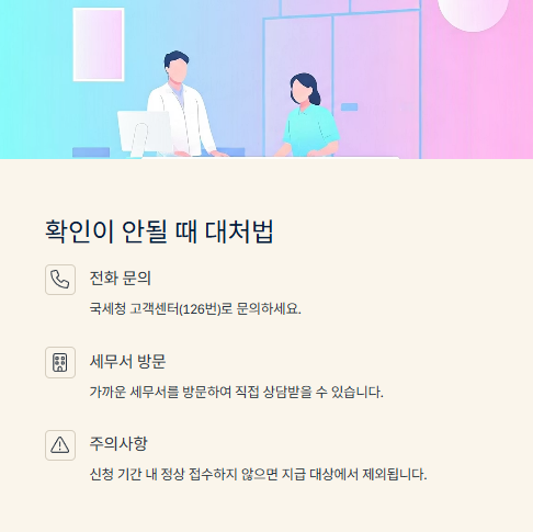 홈택스는 국세청이 제공하는 공식 전산 시스템으로, 가장 빠르고 정확하게 신청 여부와 결과를 확인할 수 있습니다.