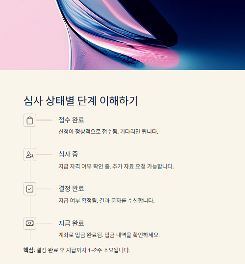 | 심사 중 | 지급 자격 여부 확인 중 | 추가 자료 요청 가능 |