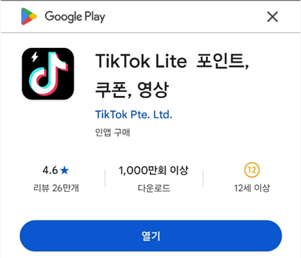 3. 구글 플레이 스토어에서 TikTok Lite 설치