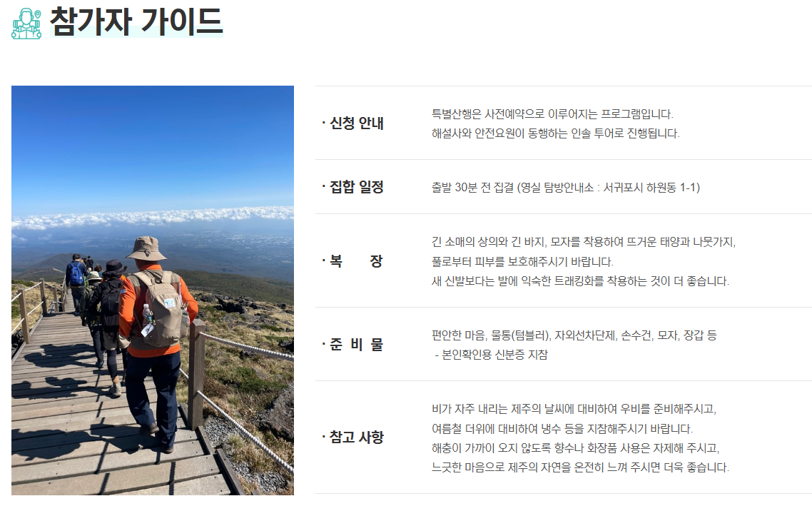 - 탐방 전 컨디션 관리 필수 – 고지대 산행 주의