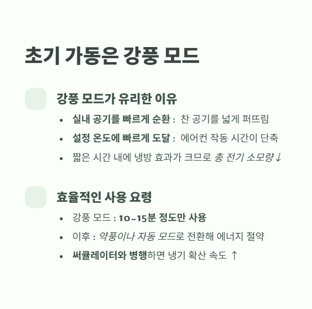 2. 초기 가동은 강풍 모드로 빠르게 냉방