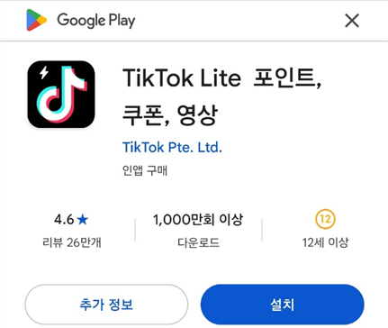 3. 구글 플레이 스토어에서 TikTok Lite 설치