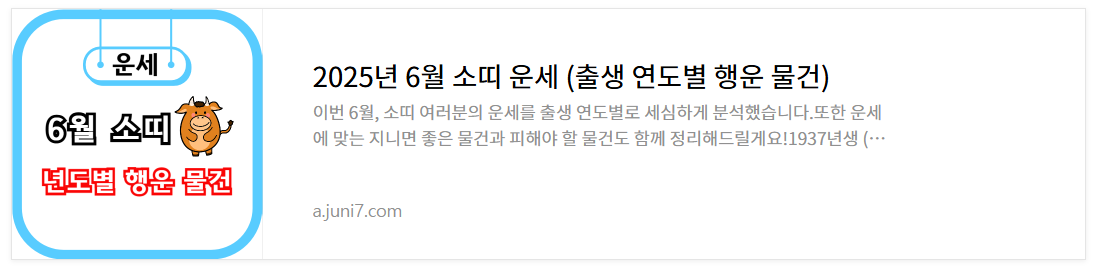 2025.05.08 - [생활정보] - 2025년 6월 소띠 운세 (출생 연도별 행운 물건)
