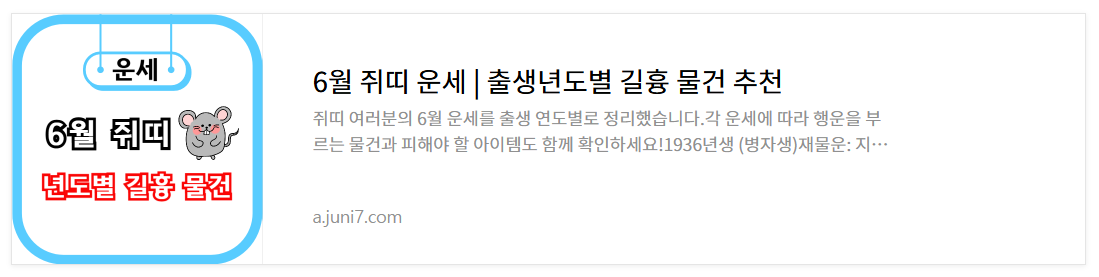 2025.05.08 - [생활정보] - 6월 쥐띠 운세 | 출생년도별 길흉 물건 추천