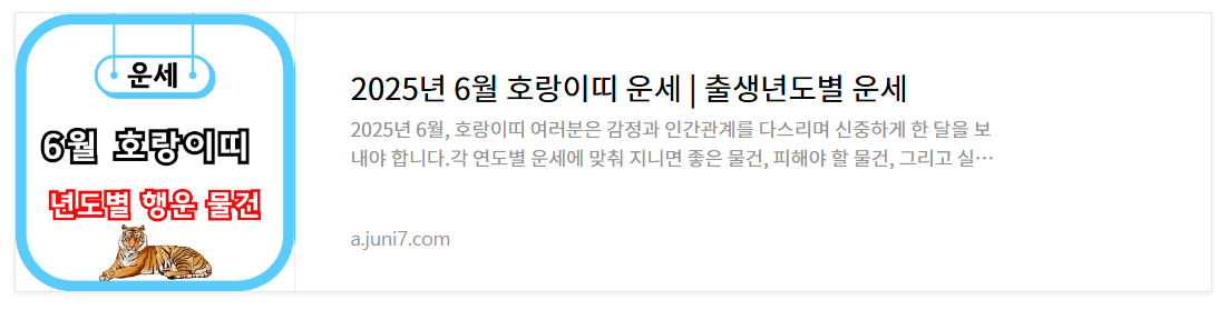 2025.05.10 - [생활정보] - 2025년 6월 호랑이띠 운세 | 출생년도별 운세